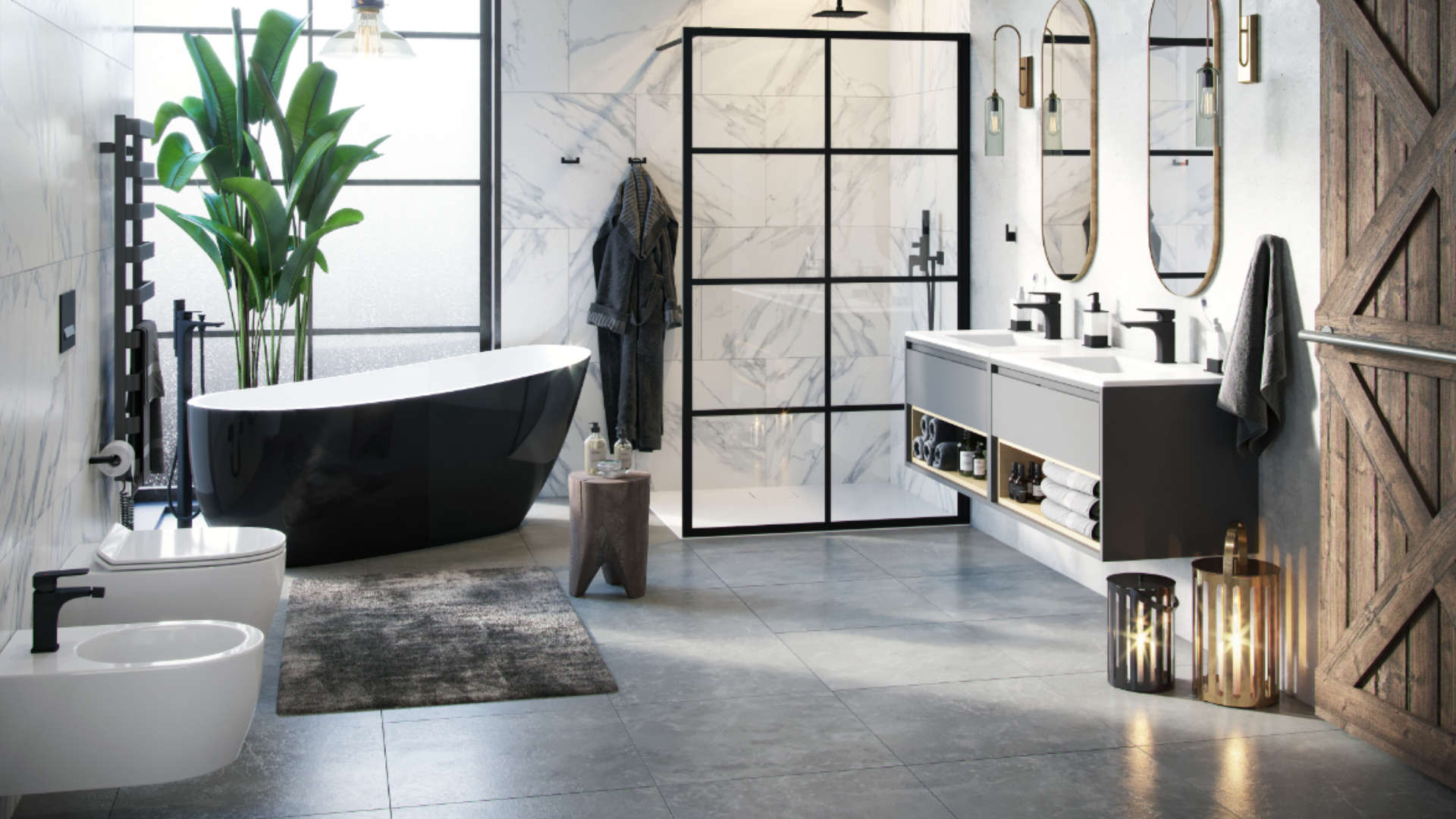Wprowadzenie ciemnych baterii i akcesoriów do łazienki wymaga świadomego podejścia do stylu. Modne aranżacje loftowe, japandi, skandynawskie czy retro korzystają z czarnych elementów, aby podkreślić charakter wnętrza. W stylu loftowym czerń komponuje się z betonem, surową cegłą i metalem, zaś łazienka w stylu japandi łączy się z jasnym drewnem i prostymi formami, tworząc harmonijną przestrzeń. Czarna armatura nie jest jednak zarezerwowana tylko dla odważnych projektów – w minimalistycznych aranżacjach przyciąga uwagę subtelnym kontrastem, a w klasycznych łazienkach stanowi nowoczesny akcent na tle bieli i marmuru. Kluczem jest zachowanie równowagi pomiędzy ciemnymi i jasnymi elementami, by nie przytłoczyć wnętrza. Jeżeli zastosujemy czarne baterie w małej łazience, warto wybrać jasne płytki, a czarne akcenty zostawić dla detali, takich jak uchwyty czy ramy luster.