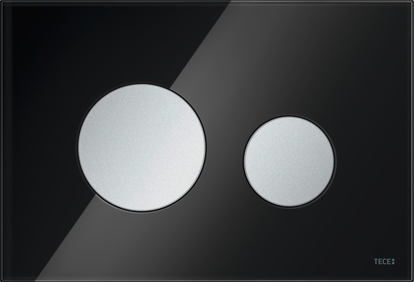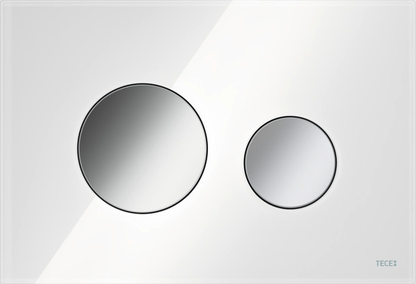 Przycisk spłukujący do spłuczek TECE uruchamiany z przodu lub od góry. Płaski przycisk spłukujący ze szkła z dwoma sprężynującymi przyciskami. Odpowiedni do montażu zlicowanego w połączeniu z ramką montażową do WC. Kompatybilny z płytką maskującą z koszem na kostki czyszczące.
