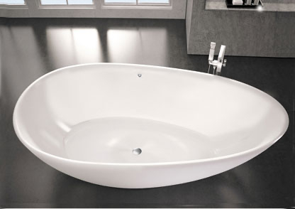 Doskonale komponująca się z przestronnymi, nowocześnie urządzonymi łazienkami, duża wanna wolnostojąca Sanitti Tre XL to produkt polski, charakteryzujący się dużą trwałością, odpornością na uszkodzenia mechaniczne i odbarwienia. Wanna została wykonana z lanego marmuru, materiału o dużej wytrzymałości, zapewniającego możliwość uzyskania efektu jedwabiście gładkiej powierzchni. W dotyku jest nie tylko gładka, ale i bije od niej naturalne ciepło, czym w zasadniczy sposób odróżnia się od klasycznych elementów wykończeniowych wykonanych z naturalnego kamienia.