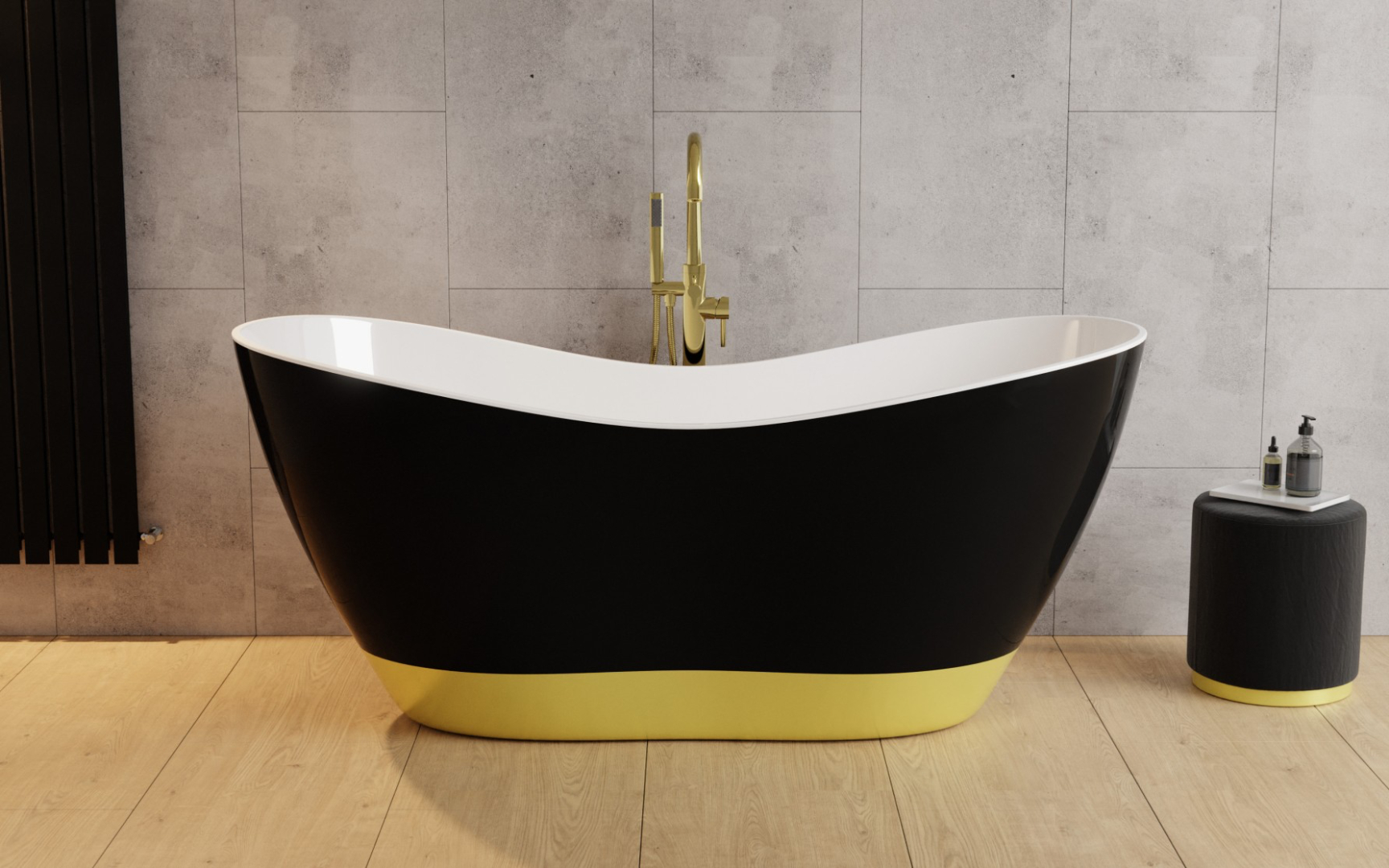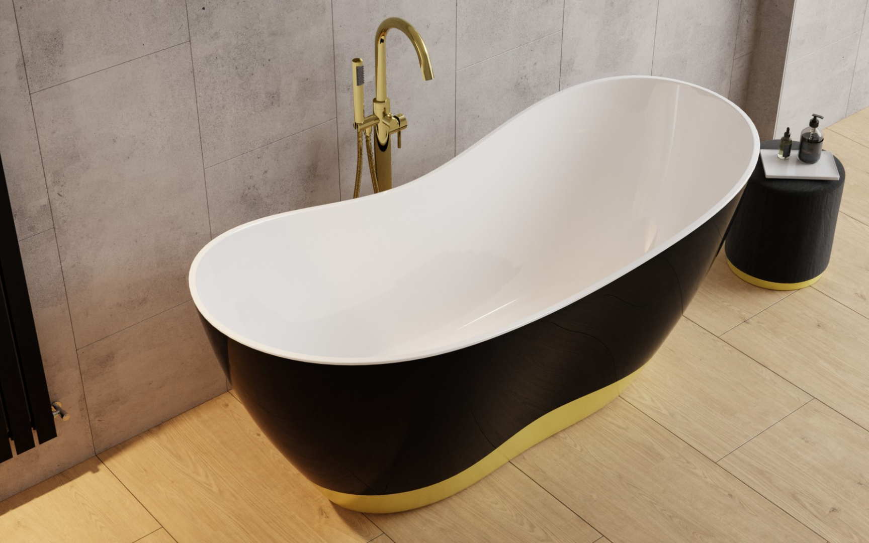 Wanna Viya B&W to nowoczesny model wolnostojący, który harmonijnie łączy elegancki design z wysoką funkcjonalnością. Wykonana z odlewu mineralnego, będącego mieszanką naturalnych kamieni, takich jak marmur czy granit, oraz żywicy, charakteryzuje się idealnie gładką, nieporowatą powierzchnią o wyjątkowej trwałości i odporności na przebarwienia. Dzięki doskonałym właściwościom termoizolacyjnym materiału, wanna długo utrzymuje temperaturę wody, zapewniając komfort podczas kąpieli.