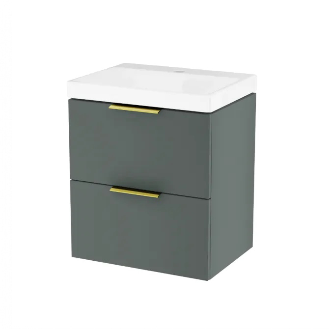 Szafki z umywalką są dostępne w dwóch szerokościach: 49 cm i 65 cm, w trzech różnych kolorach: biały połysk, czarny soft oraz szałwiowy mat. Dodatkowo, można dowolnie wybierać kolory uchwytów spośród trzech opcji: chrom, złoty połysk i czarny mat, co daje możliwość personalizacji mebli zgodnie z indywidualnymi preferencjami.