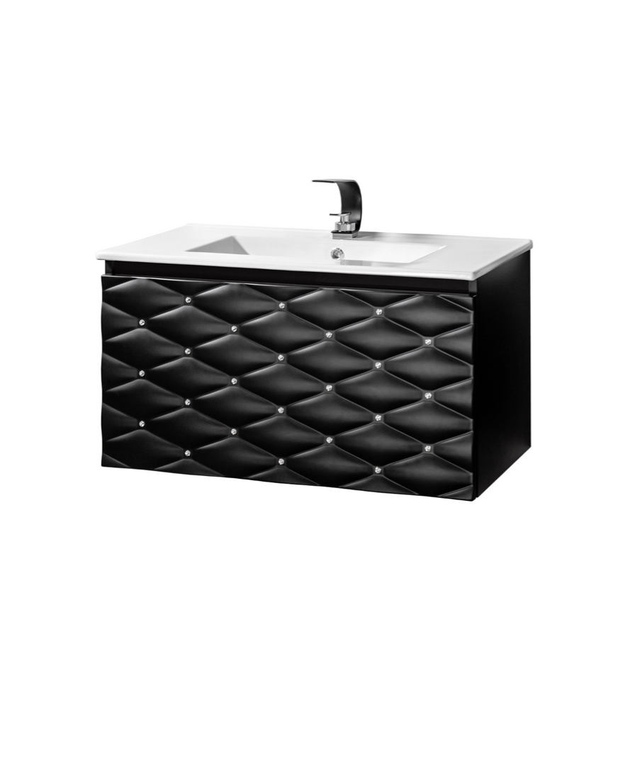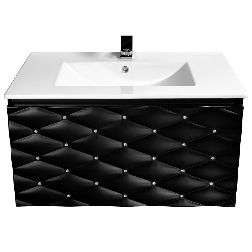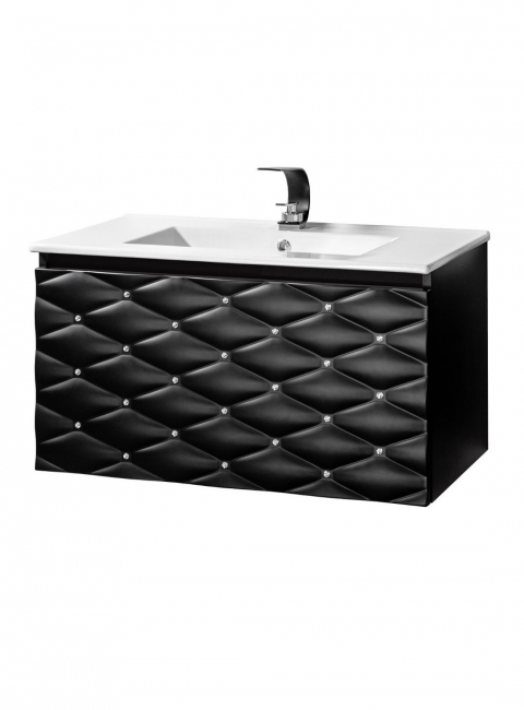 Szafka łazienkowa pod umywalkę Sanitti Lira w kolorze czarnym o szerokości 80 cm i wysokości 44 cm z kryształkami srebrnymi. Szafka posiada jedną głęboką szufladą z cichym domykiem pozwalająca na umieszczenie w nich potrzebnych w łazience produktów oraz dodatkową szufladą wewnętrzną. Fronty szafek wykonane są w unikalnej technologi z całkowicie wodoodpornych i lekkich materiałów. Dla miłośników stylu retro można domówić czarne nóżki w stylu retro.
