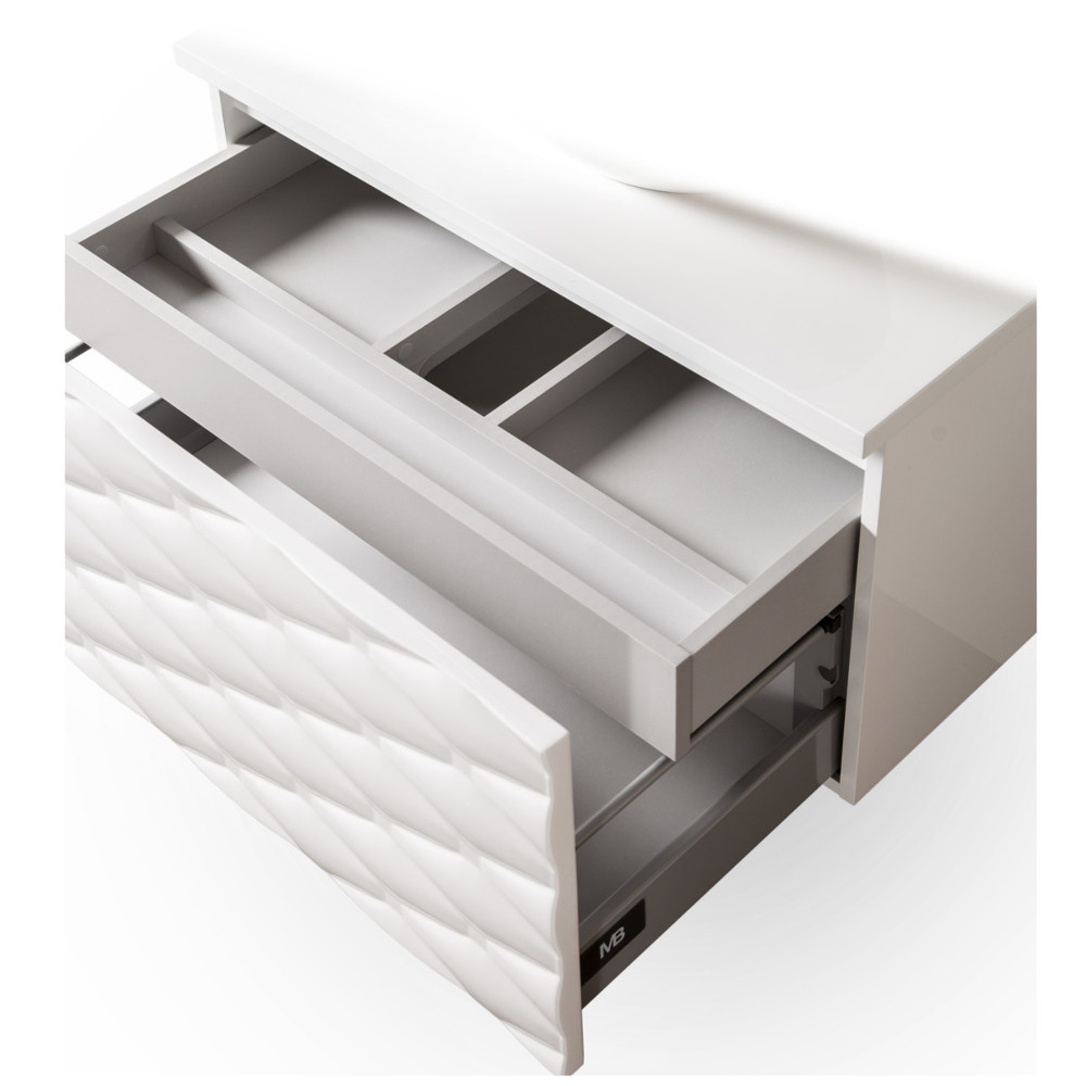 Cechą charakterystyczną mebli jest dbałość o szczegóły. Front wykonany jest unikalnej technologi bez udziału materiałów drewnopodobnych i dlatego jest lekki i trwały.