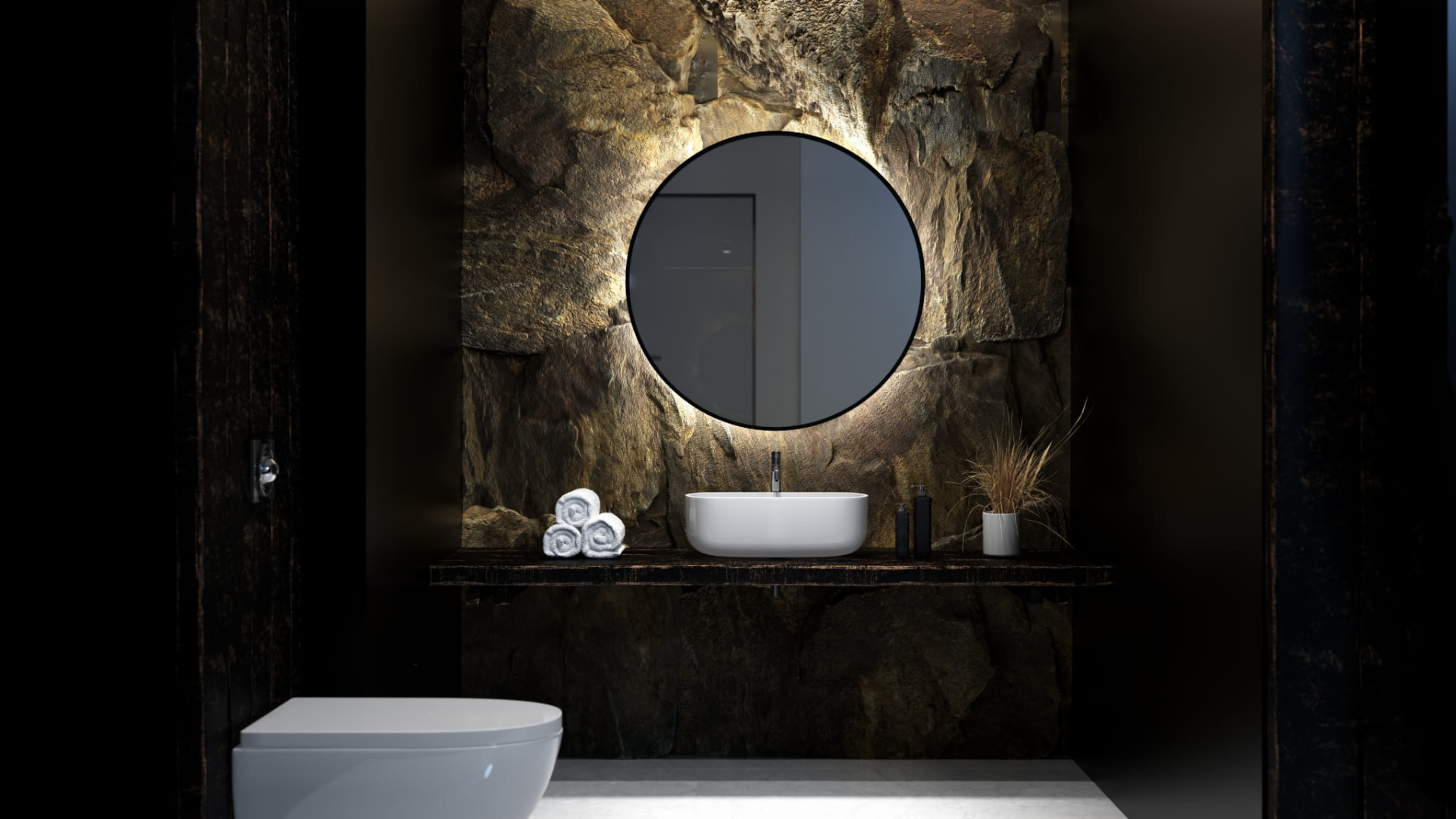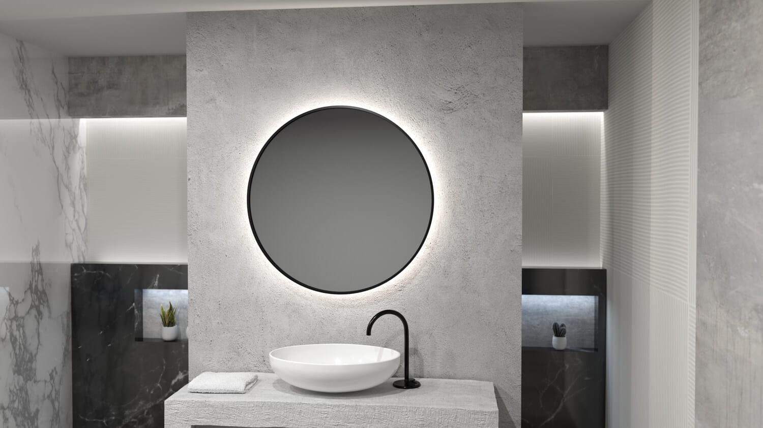 Lustro RONDA PLUS MCJ - najwyższej jakości lustro stworzone z dbałością o detale. Rama nie przylega bezpośrednio do ściany, co powoduje widoczną poświatę wokół lustra.