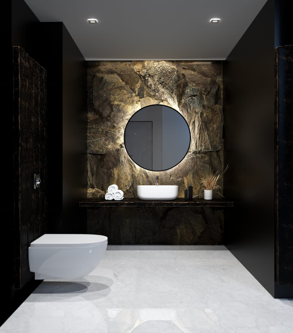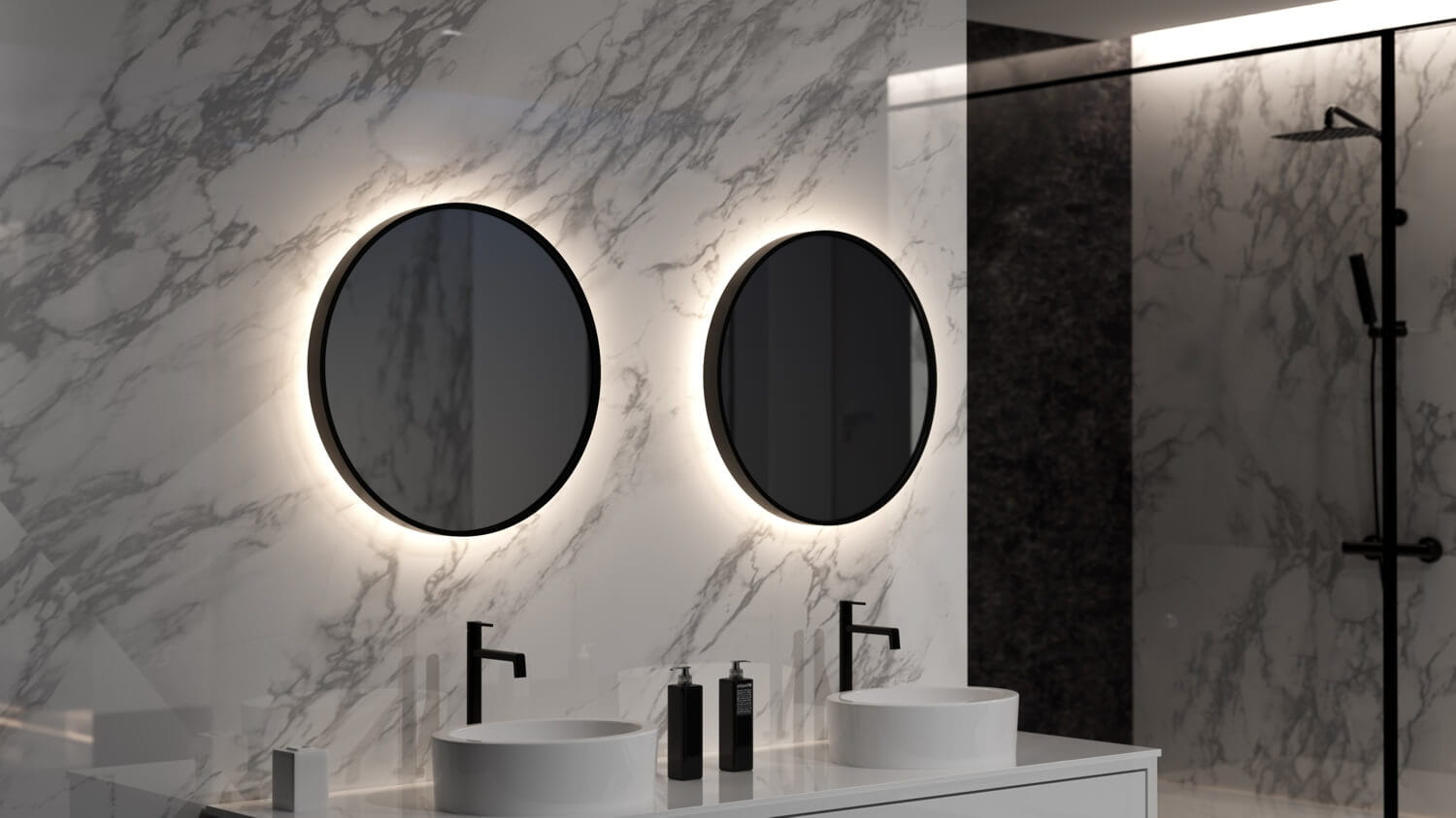 - podświetlana szklana półka przy dolnej krawędzi lustra