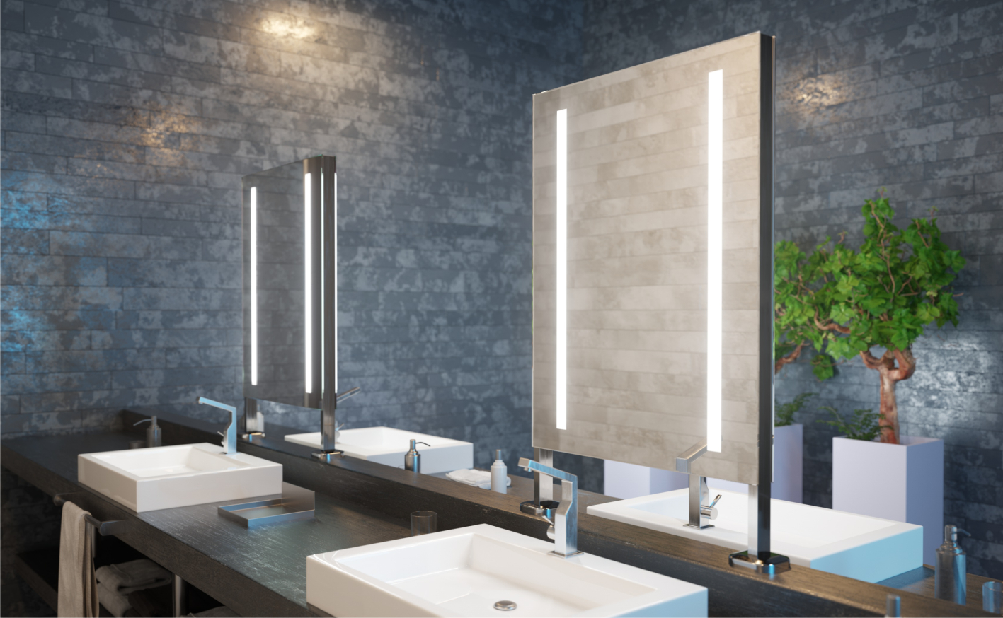 - podświetlana szklana połka przy dolnej krawędzi lustra